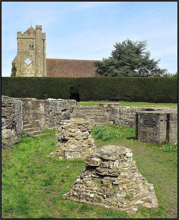 Jako první stavba v areálu byl postaven kostel a to v 11. století. Kostel byl 69 m dlouhý, ke konci 13. století ke stávajícímu kostelu bylo dostavěno několik kaplí, na východním konci kostela byl postaven nový kůr a také klenutá podzemní krypta. Z krypty se ale dodneška zachovala jen část, která byla pod úrovní okolního terénu, ostatní součástí kostela byly srovnány se zemí.